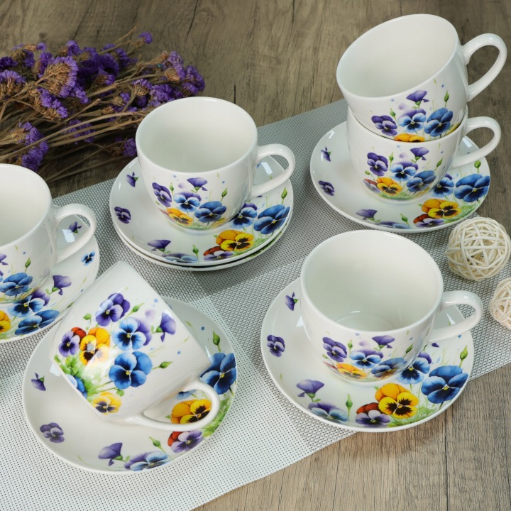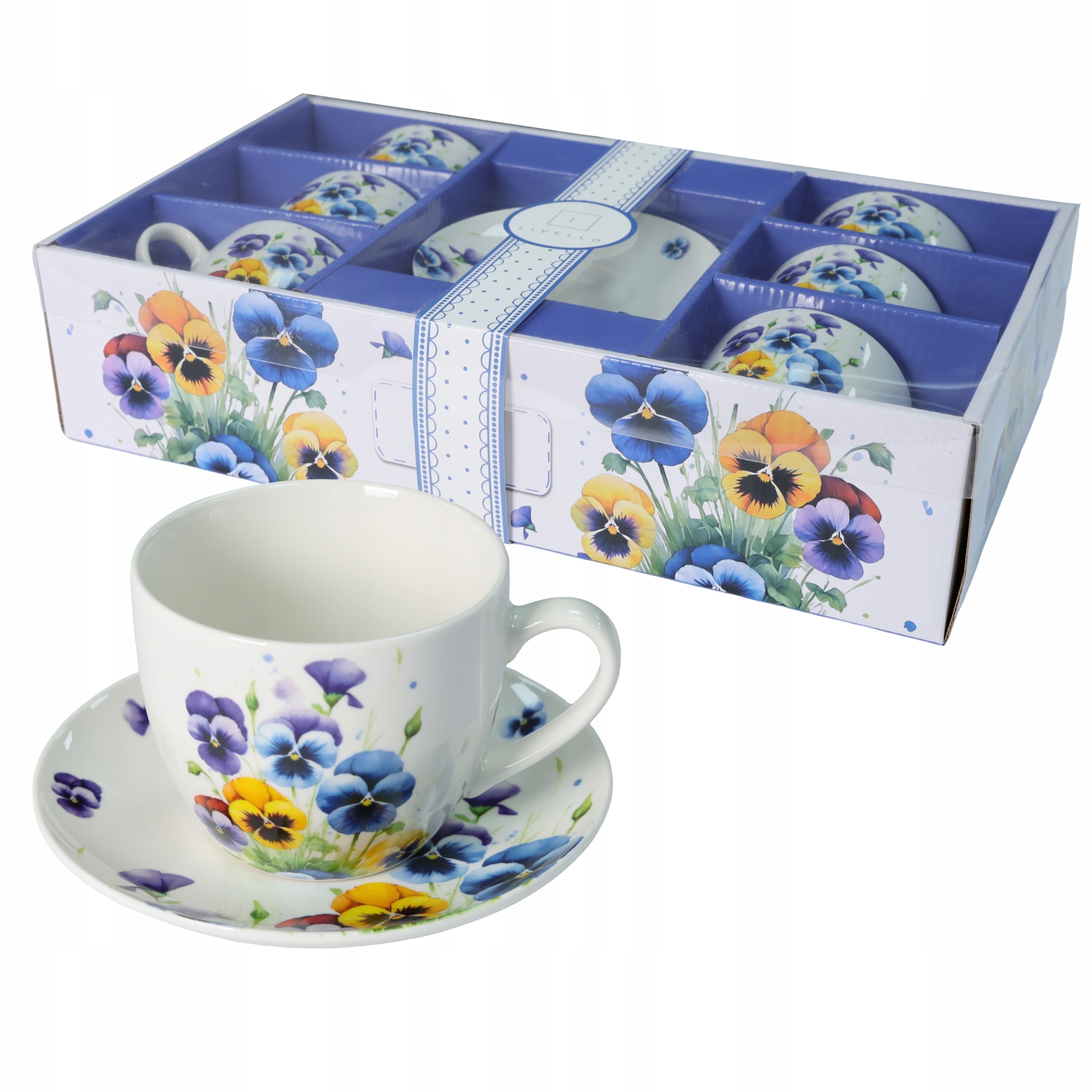 LIVELLO Zestaw do kawy 6x filiżanek 250 ml ze spodkami 14 cm – motyw bratki