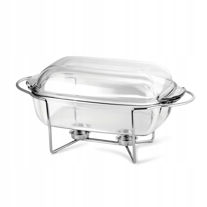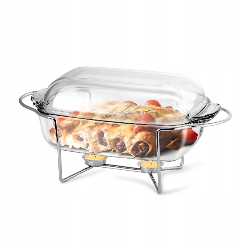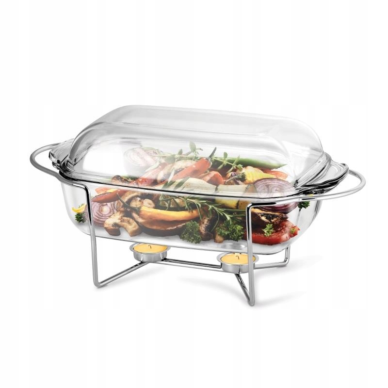 Naczynie prostokątne żaroodporne z podgrzewaczem Thermo 5,5 l to praktyczne i eleganckie rozwiązanie do serwowania potraw zarówno w domu, jak i podczas przyjęć. Wykonane z wysokiej jakości szkła żaroodpornego, gwarantuje równomierne rozprowadzanie temperatury oraz odporność na nagłe zmiany cieplne, co pozwala na bezpieczne pieczenie, zapiekanie i podgrzewanie potraw. Pojemność 5,5 litra sprawia, że naczynie idealnie nadaje się do przygotowania dań rodzinnych, zapiekanek, lasagne czy większych porcji na przyjęcia.